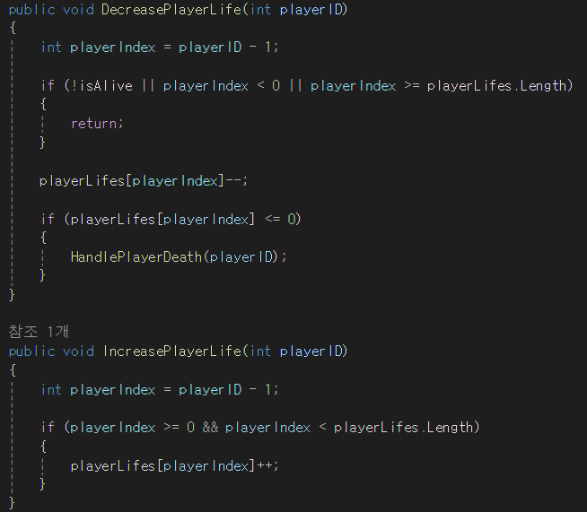 팀원분이 배열로 처리하는게 좋다고 하셔서 조언을 듣고 플레이어 사망처리 부분을